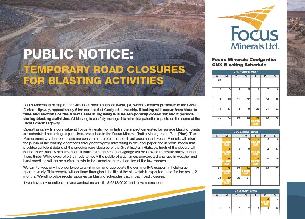 Focus Minerals is committed to unlocking the full potential of its mineral resources and processing facilities at Coolgardie, and delivering long-term value to shareholders while upholding the highest standards of governance and sustainability.